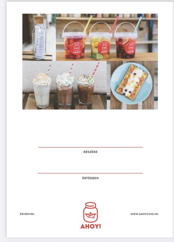 Ajándékutalványaink tetszőleges összegben elérhetőek. Felhasználása a kiállított dátumtól számított 1 év. Bármely termékre beváltható helyben fogyasztás illetve elvitel esetén is.